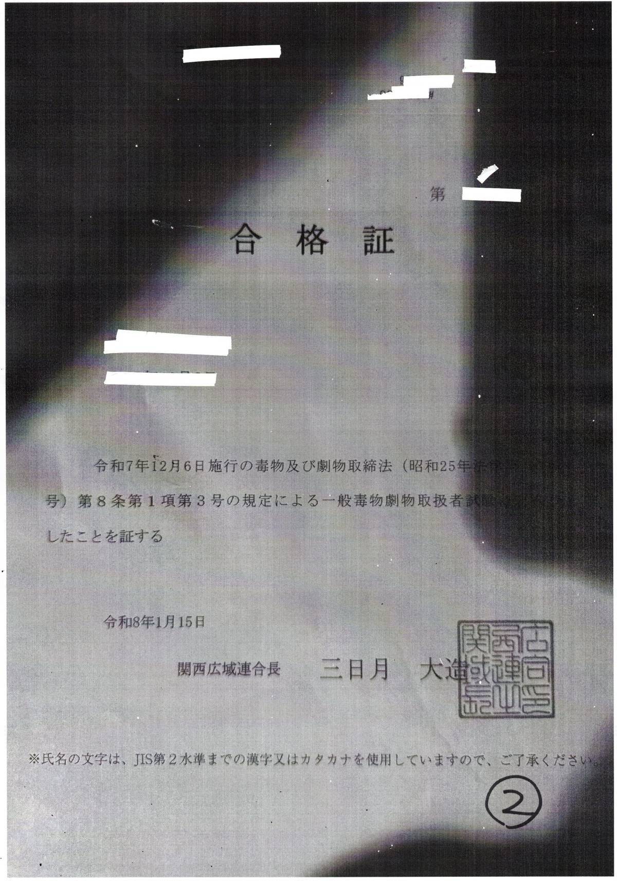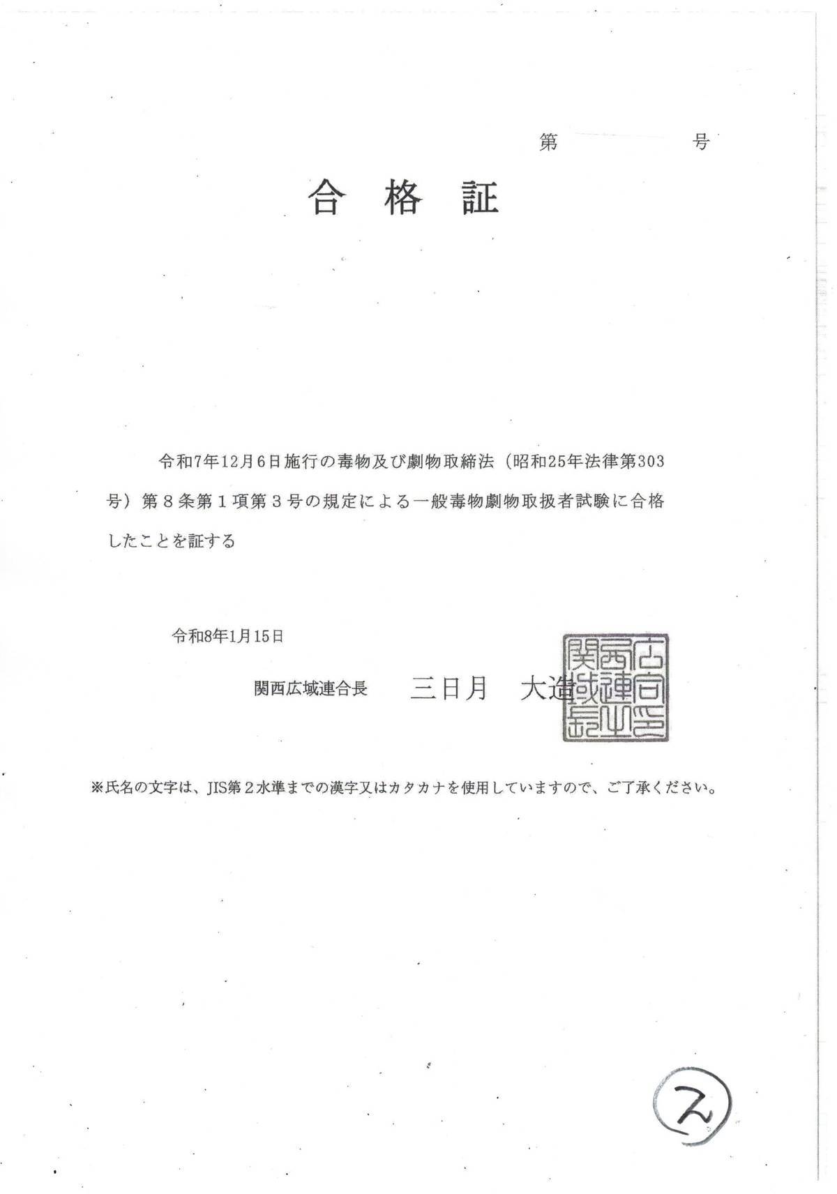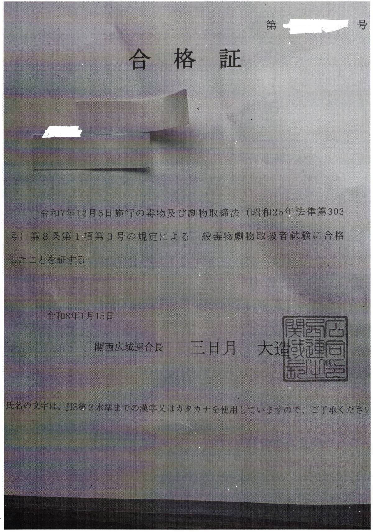 毒物劇物取扱者試験は各都道府県ごとに1年に1回行われております。不合格になると再受験が簡単ではありません。ぜひとも1回で合格できるように頑張りましょう。大阪で合格しても奈良で合格しても資格の価値は変わりません。