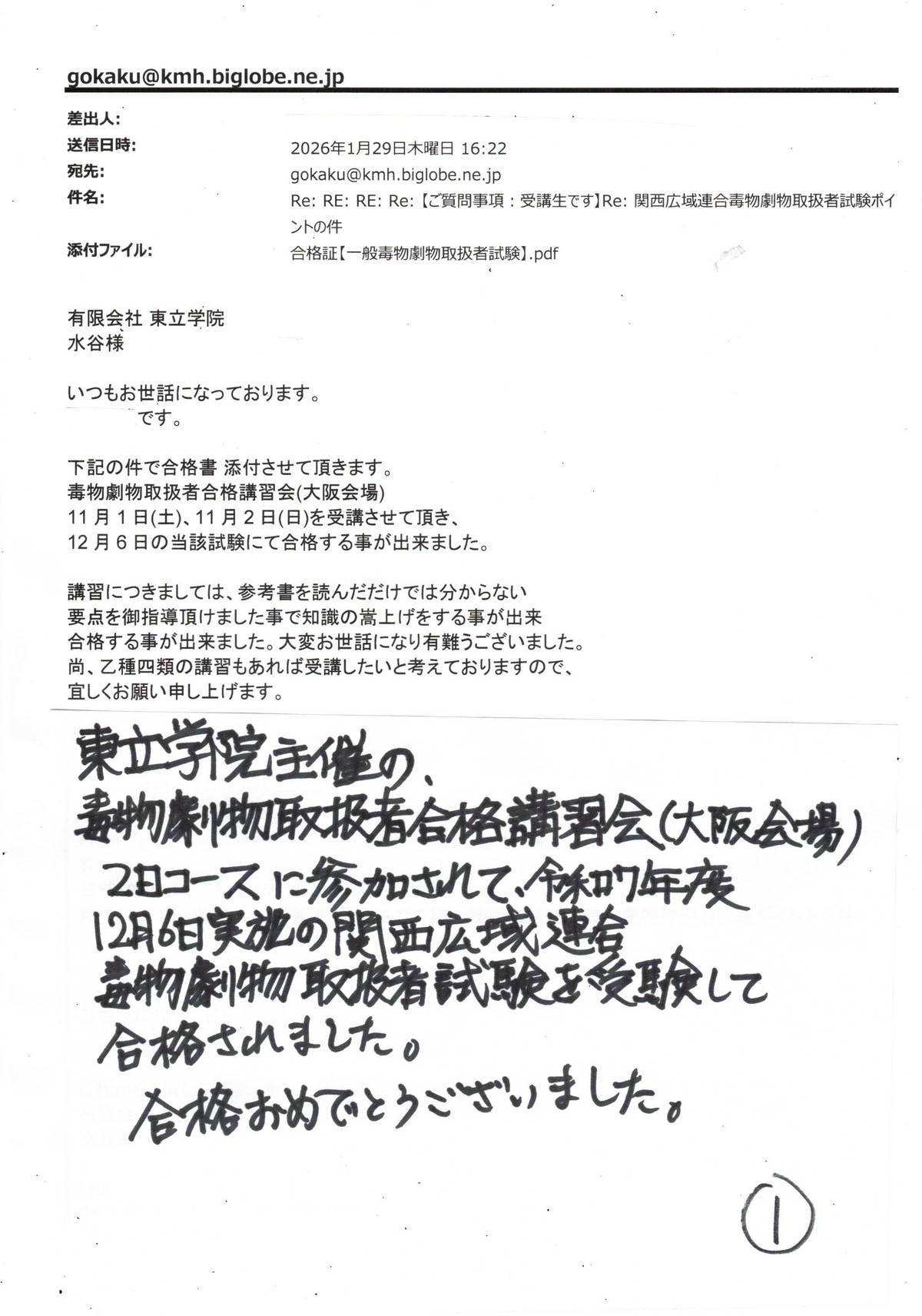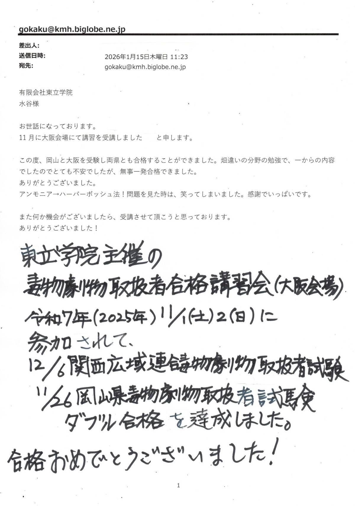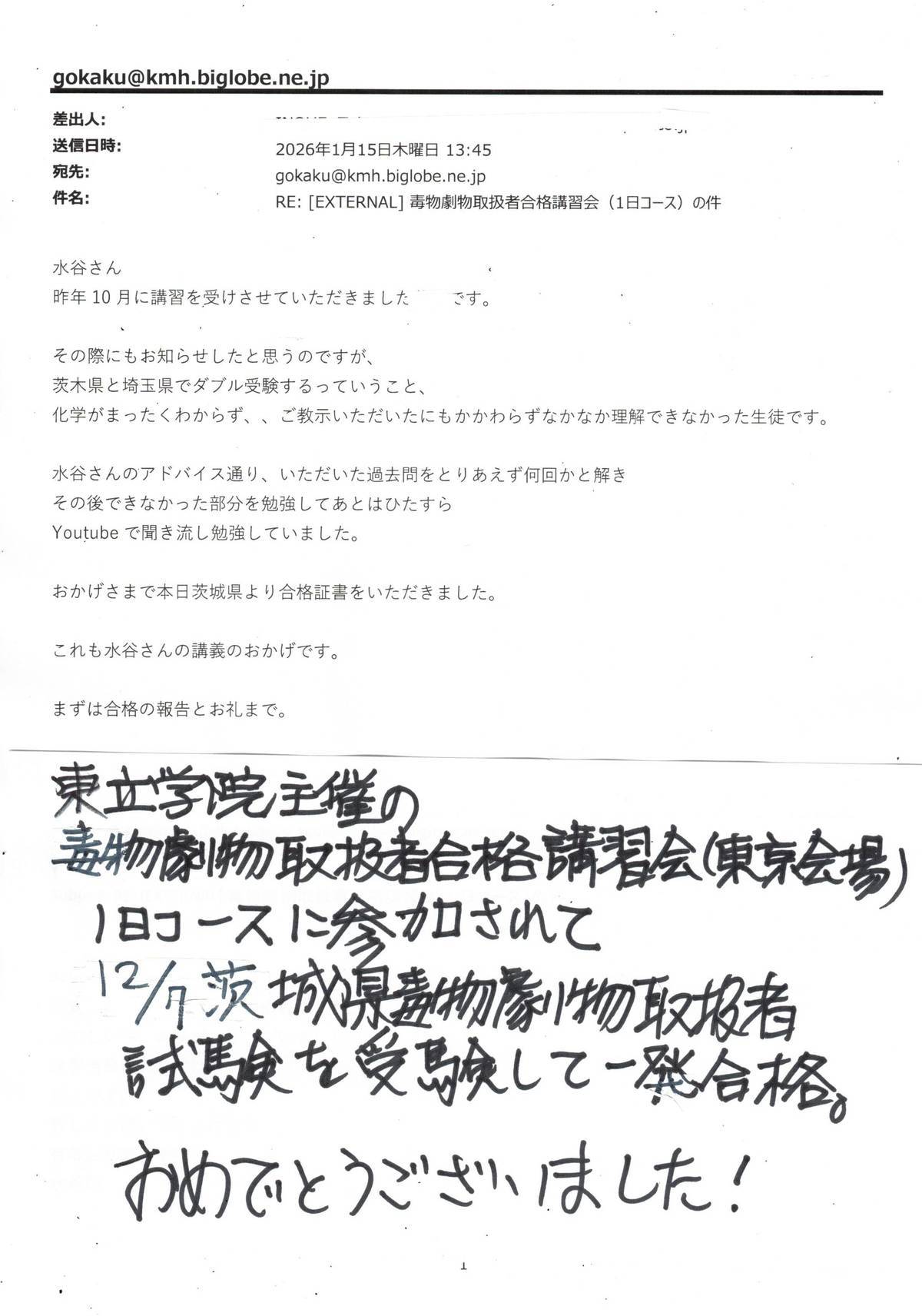 おられます。全国で通年で毒物劇物取扱者(一般)受験準備講習会を開催しているのは当学院のみです。